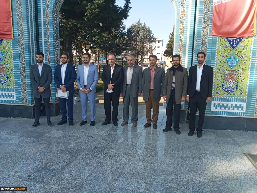 به مناسبت گرامیداشت روز دانشجو مرکز آموزش عالی شهید مطهری نوشهر  با همکاری سایر دانشگاه های نوشهر  به عطر افشانی گلزار شهدا حاضر شدند. 3