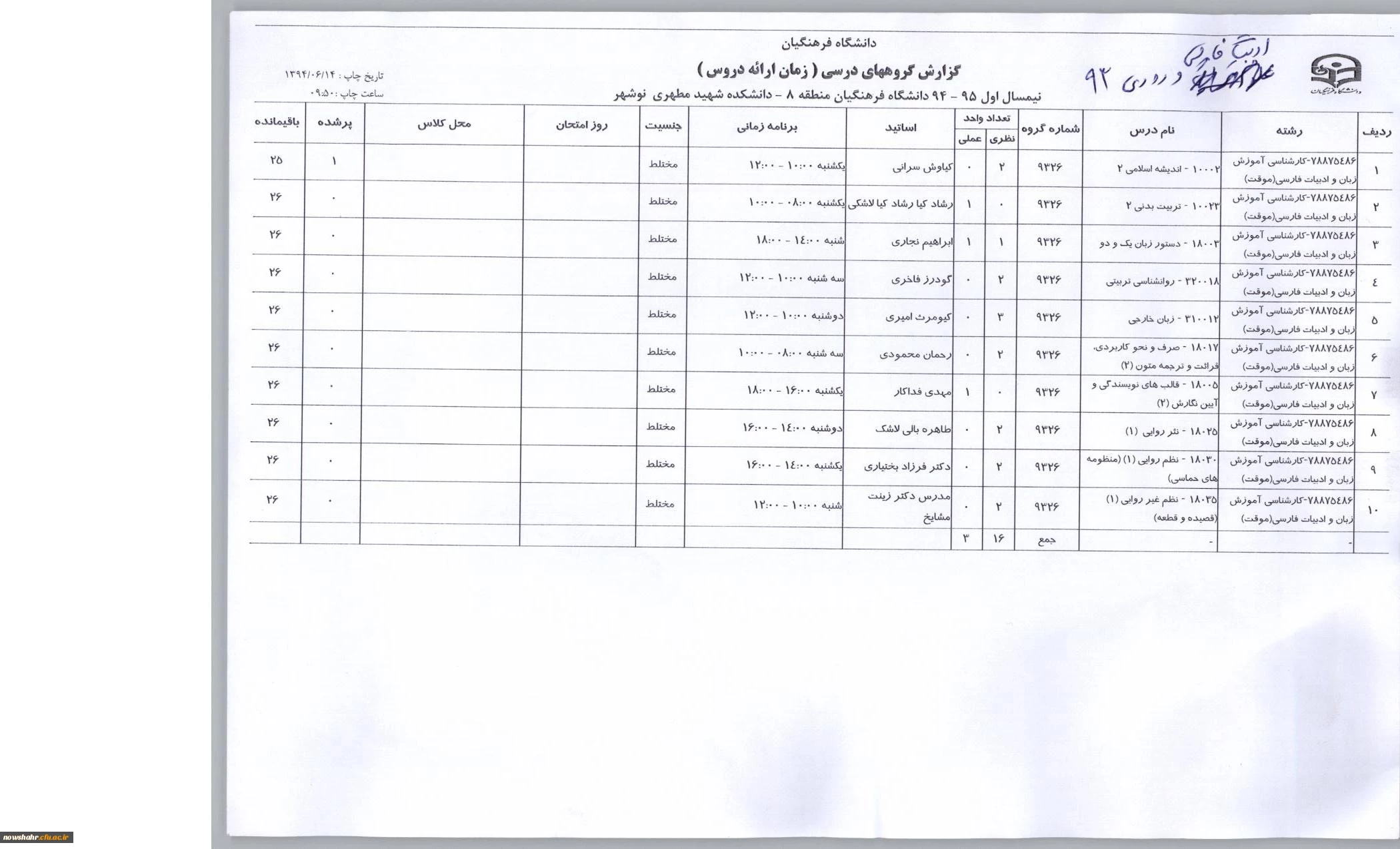 دانلود فرمایید(دروس انتخابی ترم اول 94 به تفکیک رشته) 5