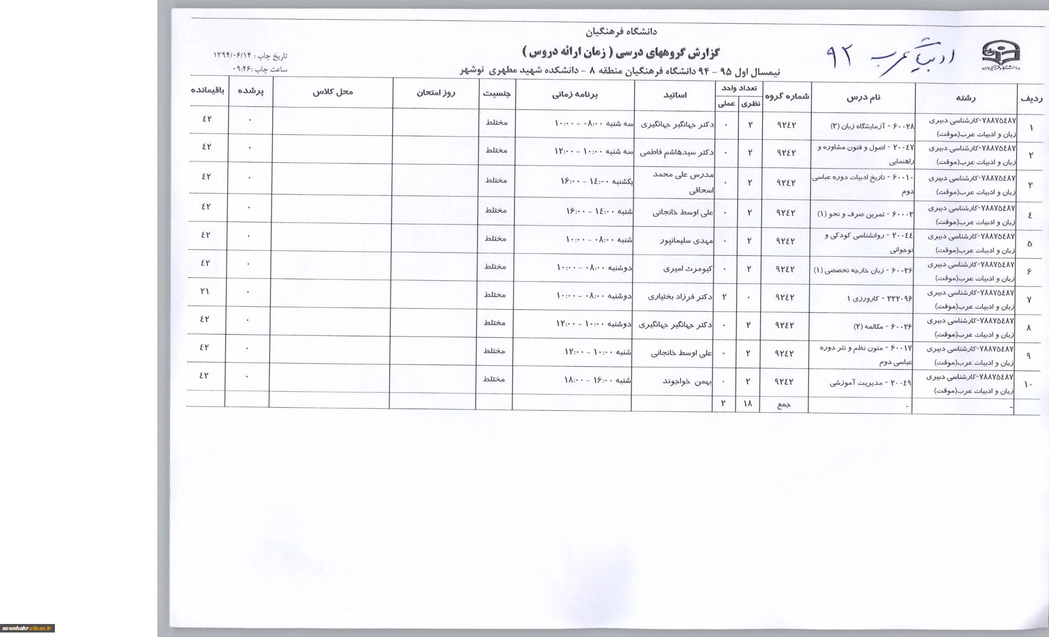 دانلود فرمایید(دروس انتخابی ترم اول 94 به تفکیک رشته) 7